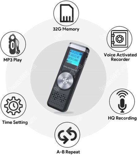В диктофон встроен динамик, который позволяет прослушивать записи или музыку.